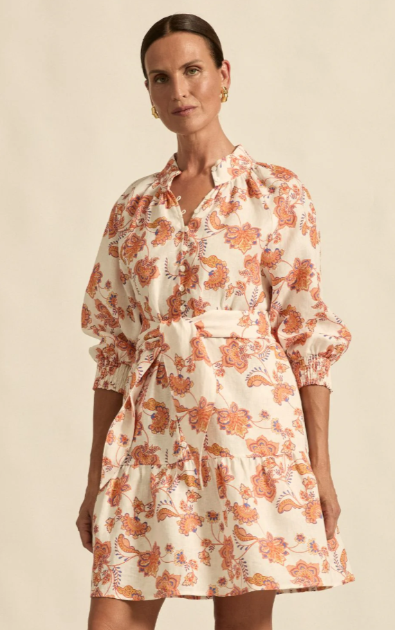 designed for comfort and versatility, it blends feminine form with a fluid feel. • 100% breathable linen crafted for trans-seasonal wear • high stand collar and soft 3/4 sleeve for balance • elasticated cuffs and shell buttons provide practical detail • off-the-body fit and wide belt for personalised styling • versatile for everyday, travel, or elevated casual