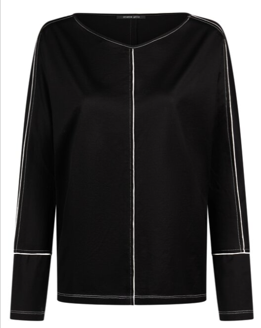 LAENA Annette Gortz V-neck top featuring a subtle batwing sihouette with narrow sleeves.